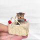 From the accessories I crocheted the collar and decorated it with micro rhinestones. The puppy has a woven carrying bag, I decorated it with crocheted roses.