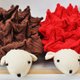 a.紅刺蝟 b.棕刺蝟 c.棕色綿羊 d.米色綿羊 e.粉紅兔 f.米色兔