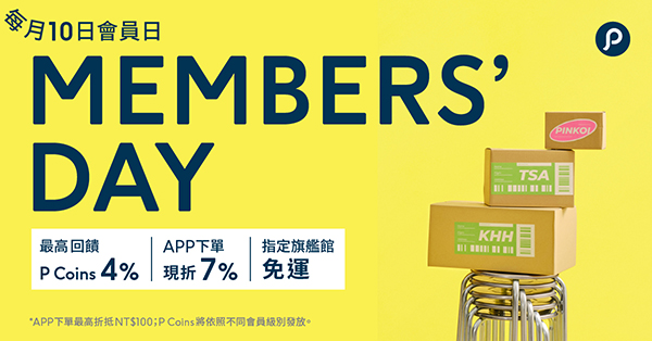 滿 NT$1,000 現折 7% OFF + 3% P Coins 回饋* |