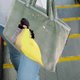 旅行收納手提袋 橫式小袋小米爬梯子款插畫托特包 選絨仿麂皮帆布