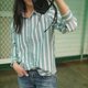 棉嫘縈 丹寧藍加白色長袖條紋襯衫
