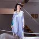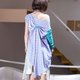 * 不對稱剪裁, 繞頸設計, 右袖落肩長袖拼接他色布料, 左袖及肩短袖, 衣身自然垂墜