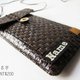 加了塗層的紙草不會散開, 內面縫上具保護性的絨布,「摺骨」固定前後兩面,貼心保護手機;鈕釦採用了椰子殼製成,用上橡筋扣緊