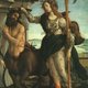 兩顆總重 1.40+克拉蛋面切割藍暈月光石; .925 純銀; 尺寸約為 90.00mm X 13.00mm; 《 捏造的詩歌 》- 2011 Weca Wang 年度傑作。 - 雅典娜與半人馬仙托 桑德羅‧波提切利 ( 1445 ~ 1510 )