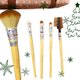 商品說明: 五支竹化妝刷(含唇刷+眼線刷+眼影刷+腮紅刷+眉睫刷)以及刷包 材質 :人造纖維毛+竹柄+鋁管/刷包:毛氈布 保養方式: 定期用毛刷專用的洗劑清洗刷毛, 冷水順著毛清洗乾淨後, 用衛生紙吸乾水分再放置通風處晾乾,盡量不用吹風機或日曬方式處理毛刷,這樣可延長刷毛的使用壽命喔. 品牌介紹: 竹子生長速度比一般樹木要快上很多,所以比常見的木柄刷來的環保,減少樹木砍伐.愛爾蘭的設計師希望能用竹柄取代木柄或金屬柄的使用,讓化妝刷亦能以友善環境的概念推廣出去.