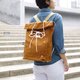 本體採用日本NO. 9 防潑水石蠟帆布,搭配本栃木縣製植鞣皮革。