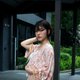 布料超輕薄又很度假感,蝙蝠袖一動就飄。