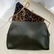 包包整個是很漂亮的橄欖綠,顏色美炸。皮料是牛皮壓紋,紋理是蜥蝪皮紋。