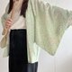 日本製和風印花薄款綠色古著羽織和服外套-H435