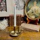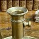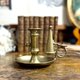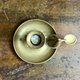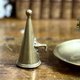 來自法國的手持式黃銅燭台,搭配了原配的錐形滅燭器。銅質厚重,表面留有歲月沉澱的自然包漿,呈現出溫潤、古樸的光澤感。寬大的底盤用於承接滴落的蠟油。旁邊那個錐形的滅燭器,可以輕鬆地懸掛在提把旁的孔洞上,它的功能是輕輕蓋住燭火,隔絕空氣,安全地熄滅蠟燭。