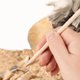 4.挖掘出的恐龍骨架用清水清洗,用我們准備好的工具清理細孔中的土質