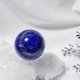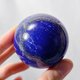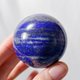 設計師在偌大的工廠中、千萬顆晶球中,**持恭敬心、高規親選**本件**青金石**球,寶石球體碩,重約 196g,藍色正而艷、正氣凜然,金、白分佈細膩成稀有的**天眼紋(天珠)**,被視為**「來自上天的祝福」**、能**「啟發智慧、驅魔避邪」**,品相極美,寓意吉祥,值得收藏。