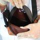 臘腸狗造型側背包,尺寸約 20x20x5 公分,背帶長約 120 公分,背帶堅固且可調整長度,採用高品質顏料於合成皮革上進行手工繪製,車縫精緻。
