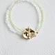 - 透明感あふれる極小ハーキマーダイヤモンドと、黄緑色のプチペリドットを組み合わせた二連ブレスレット。 ゴールドのマンテル(留め具)がアクセントになり、手元を上品に彩ります。