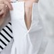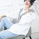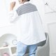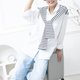 披掛黑白橫條假二件長袖襯衫 / 白色 透氣舒適,夏秋皆宜