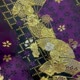 以日式典雅織錦緞為基底,細緻扇面與櫻花圖樣交錯交織,金線隨光流轉,呈現低調卻不失奢華的美感。紫黑漸層如夜幕鋪展,彷彿映照皇室夢境。