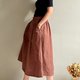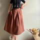 瓦倫西亞之舞/紅土色純棉壓摺中長裙/圓裙100%棉