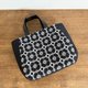 這是一款使用 mina perhonen 的「anemone」布料(深藍 × 白色)製作的手工包。