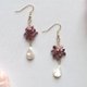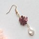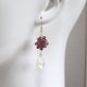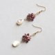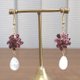 カラーリングはジューシーなラズベリー。カットの入ったペアシェイプのホワイトシェルが優雅に揺れる、派手になりすぎない上品なピアスです。