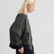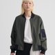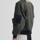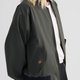 以舒適斜紋純棉素材設計而成的軍綠色短版飛行夾克。落肩的版型與率性的鎳銅拉鍊及彈簧扣在夾克中跳色亮眼,領子、袖口與下擺以深藍色羅紋面料作為跳色設計,所有的口袋皆以藍色刺繡格紋布料作為剪接素材,讓此款夾克在各個細節上顯得別緻精細,此款式有長版及短版可供挑選。