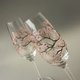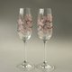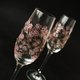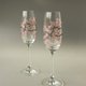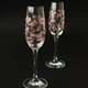 水晶香檳杯 2 件套,手繪。飾有黃水晶水鑽。淡粉色浮雕透明花朵。獨一無二的水晶香檳酒杯,可發貨!