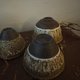 好像黑咖啡遇到白牛奶的顏色, 有各種不同的鐵斑, 自然又奔放, 一組三個不分售, 只有一組 大12*13*8 中12*12*8 小10*10*7 小
