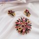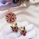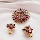 美國西洋古董飾品 / D&E Juliana 黑瑪瑙桃紅北極光鑽/胸針耳環
