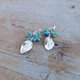 カレンシルバーのひねりチャーム、ハウライトターコイズ、山吹色と透明のオールドガラスビーズの耳飾り / ピアス or イヤリング