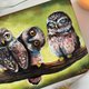 100% original acrylic painting of cute owls - what a charming gift for animal and nature lovers.