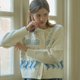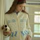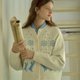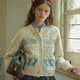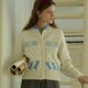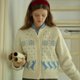 - 米白色圓領貓咪刺繡常規版型羊毛開襟衫