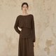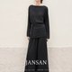 加長的裙型,視覺上使得整體比例更為修長,選用同色系的面料,使整體風格更加統一,這樣的套裝組合,隨性自在又不失格調。