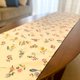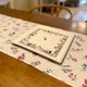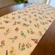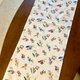 這款桌旗以水彩手繪呈現「鳥語花香」的圖樣,描繪出臺灣特有的野鳥與花卉。