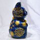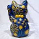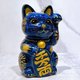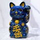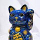 清水燒招財貓以深邃的青墨色為底色,猶如夜空般神秘且穩重,搭配金色的花火圖案,彷彿煙花綻放瞬間的華麗閃耀✨。