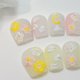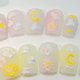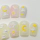 - 半透明奶霧基底映著柔粉與淡黃, 小花、雲朵與月亮在指尖靜靜相遇。 細緻微閃如星塵落下,溫柔卻不單調。 全手工繪製,每一片都略有不同, 像被月光輕輕祝福的小小護符。 適合想在日常中保留可愛、 也相信溫柔本身就是一種魔法的你。