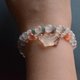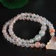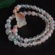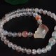 天然荔枝凍底的天然南紅冰飄6mm圓珠,極其淡的粉色荔枝凍底,有少許或白或紅的冰飄,料子干淨,冰飄分明。同底子細糯水嫩,水潤冰沁,質感瑩潤,膠凝感(果凍感)強。冰底飄花8mm老型珠做主體做的雙圈手串。搭配冰透的荔枝凍底,有草花的天然紋理的天然冰飄南紅錦鯉,做魚游水波的感覺。雕刻細致,造型飄逸,冰飄澄澈。錦鯉有祈福擋災,好運連連的美好寓意。搭配天然緋紅瑪瑙,天然翡翠藍水隔珠。整體清雅宜人,溫婉典雅。