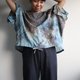 インディゴとカシースの染料を組み合わせ、泥防染を用いてプリントしております。