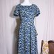 花朵蕾絲短袖古著洋裝/ 國外帶回 VINTAGE - 洋裝/連身裙 - 棉.麻 藍色