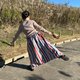 めっちゃ沢山生地を使用しているので、ママチャリだって乗れちゃうくらいのワイどさ☆