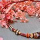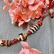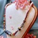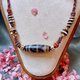 項鏈所用的編繩設計呈現微藏風格,既保留了傳統文化韻味,又不會顯得過於張揚,使其能夠與各種穿搭風格無縫融合。頸圈的粉色纏繞部分,大幅提升了佩戴的舒適感,讓它在日常使用中更為隨意與自在。同時,項鏈中則使用了藏銀裝飾,搭配兩顆酥油供與極潤的斷珠,使整體設計既具民族風情,又兼顧現代個性的表現。
