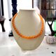 **中古鮮橙色樹脂小圓珠項鍊 貴婦淑女 日本高級二手古著珠寶首飾**