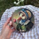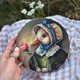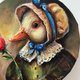 This retro-style duck portrait in a vintage dress is made with professional acrylic paints on a stretched round cotton canvas. This whimsical artwork brings a special atmosphere to your home. It's also a unique gift for animal and nature lovers.