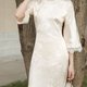 - 【香檳杏】新中式復古中國風 拼接蕾絲改良旗袍