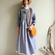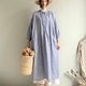 小森林/雙層棉紗全棉小立領開襟長袖長板洋裝/連身裙