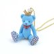 TIMBEE LO 藍色活動皇冠小熊頸鍊 綴上施華洛水晶腳子 全手工製作