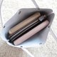 小さくても収納抜群   牛革   三角マチのレクタングルミニトート・グレー・シボ・0637 - 手提包/手提袋 - 真皮 灰色