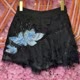 - OTT獨一無二•Unique日系重工刺繡通花蕾絲絨繡牛仔腳短裙