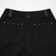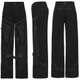 - 狂野的龐克搖滾式直筒褲。採用無彈斜紋梭織,斜紋壓花梭織料,網布製作。前幅不規則裁片拼接設計。金屬孔洞日字扣袢與半圓撞釘裝飾,營造強烈視覺平衡,龐克風範十足。