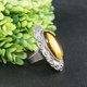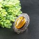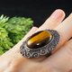 黃棕色貓眼虎眼石可調式戒指。橢圓大寶石波希米亞民族風銀鍍寶石戒指。手工赭黃芥末黃寶石,均碼宣言戒指。維多利亞時期復古風格,男女皆宜,情侶飾品,送禮給他或她。