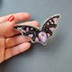 萬聖節黑色蝙蝠胸針,刺繡胸針,哥德式蝙蝠珠寶別針,女士禮物