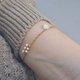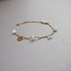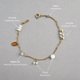 - 赫基蒙是午後穿透樹葉的清透陽光, 月光石與拉長石是夜晚靜謐流動的神秘暈彩, 而淡水珍珠,則是歲月沉澱後最溫柔的註腳。 它們形狀各異,卻在金色的鍊條上和諧共處。 不規則的晶體切面,隨著妳的手腕轉動, 折射出豐富卻不張揚的光澤。